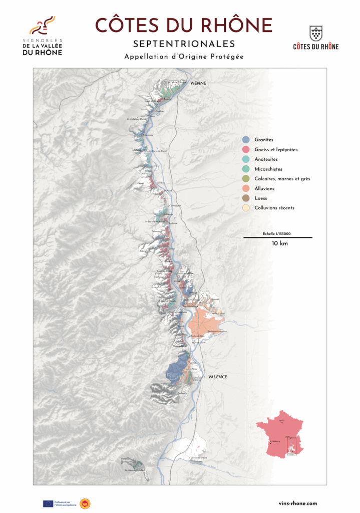 Matt Walls: Okay. Northern Rome, mostly igneous rock, mostly granite with a little bit of schist and a little bit of gneiss up in the Cote Rotie apart from Crozes Hermitage, which is alluvial soil, Southern Rhône mostly sedimentary soil. A lot of clay, clay, limestone, sand, and also some alluvials. Again, galets roulés alluvial soils. What do they do that’s different? Okay, so in the north, I would say that the effect on the wines, particularly the granite, and the metamorphic rocks, which are the schist and the gneiss, is to give wines with a certain upright feel, an aerial feel, a perfume, and they kind of have a tightness and a kind of tucked in feel that I really like. The sedimentary soils of the southern Rhône particularly the clay soils, mild soils, which is essentially clay limestone, they tend to give wines with the. With more m. Fullness and richness. And galets roulés, those big pebbles, they give wines with even more power and, structure.