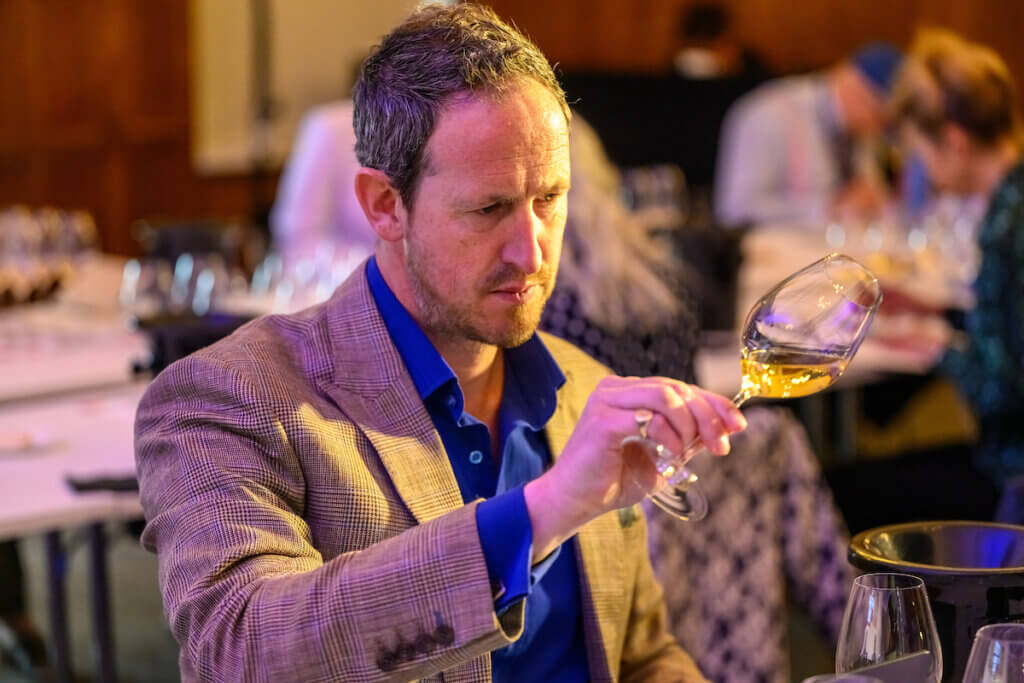 Peter: One thing that’s really important to say is with this tasting, we did take our time. Sometimes these tastings can be a bit rushed and they’re a bit kind of. We had lots of time. As much time as we needed. We had over two hours for the 26 wines, with breaks all in silence. So no conferring. Proper sort of Riedel glassware. It was, you know, it was tip top.