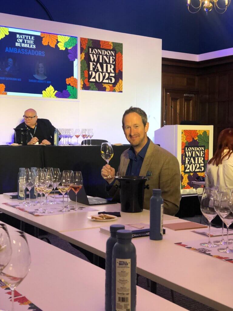 Peter: Yes, hello. Maybe we should sort of call, it a Pop the Cork Klaxon, something like that. Especially in this context, because we are interrupting your normal programme schedule to bring you important news, aren’t we? And this is all about the Battle of the Bubbles tasting that happened earlier this week, May 2025, at the London Wine Fair.