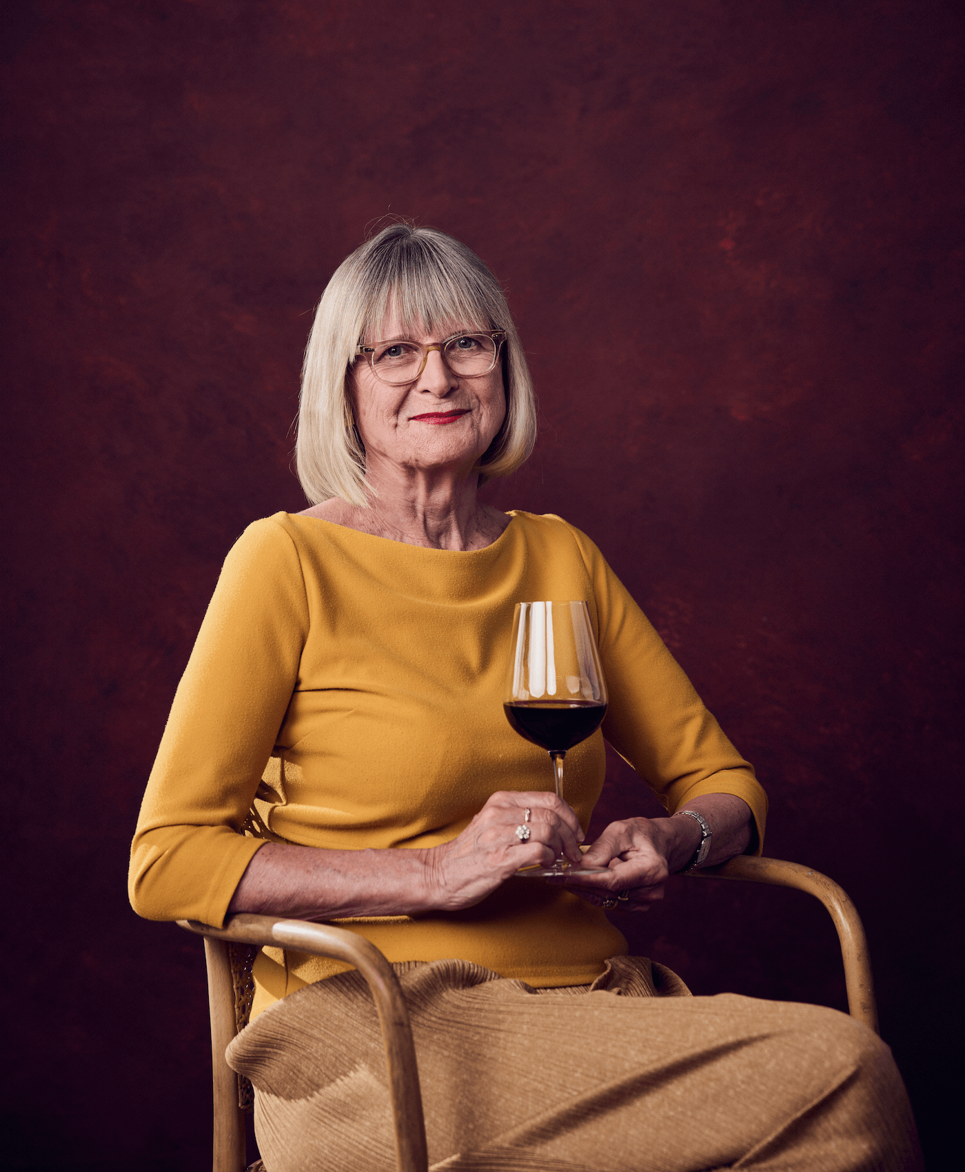 Jancis Robinson MW modelling her Jancis Robinson wine glass (credit: Richard Brendon/Jancis Robinson)