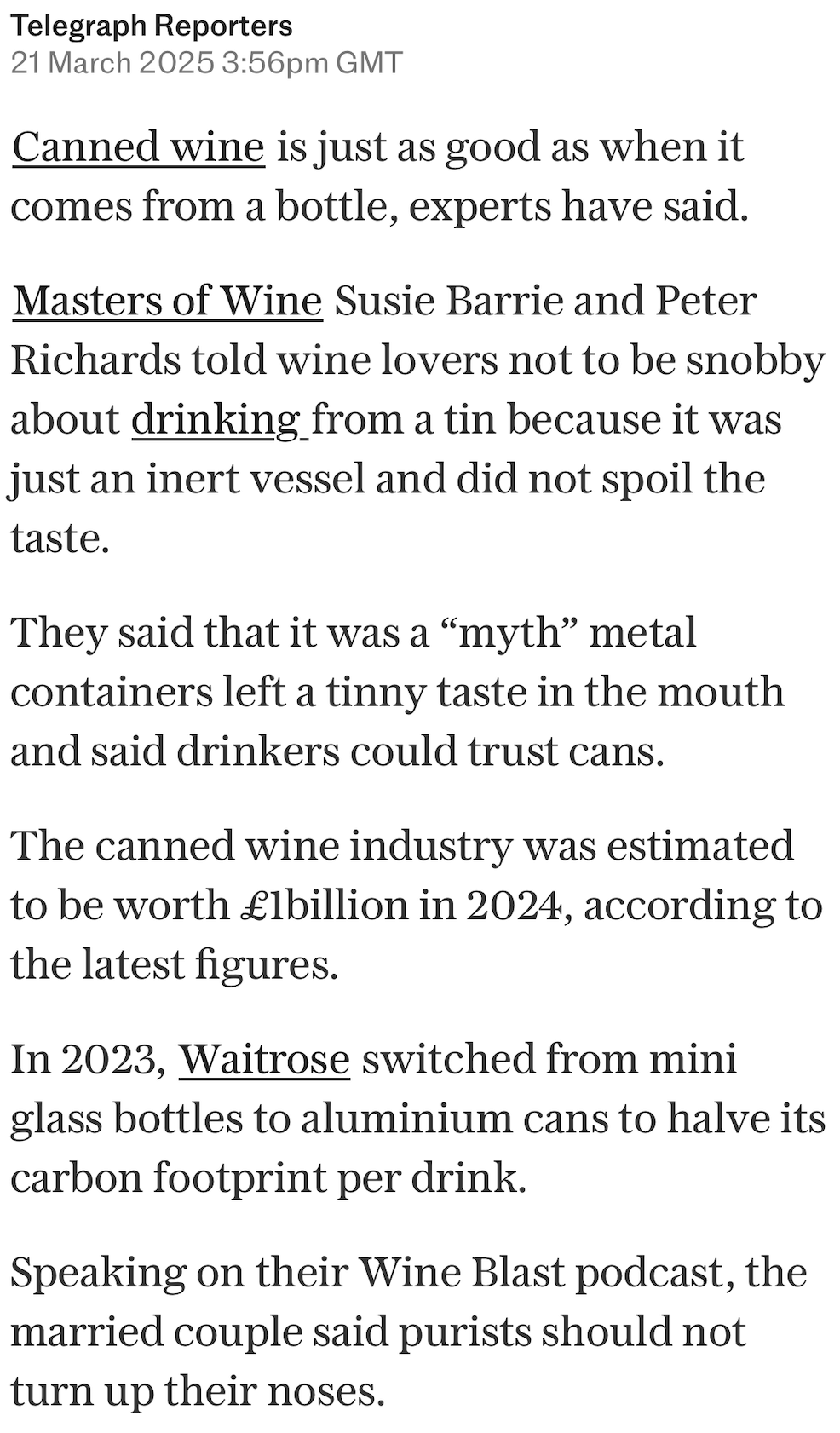 Wine Blast coverage of wine in a can The Daily Telegraph